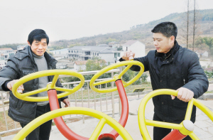 昨日,嵊州市长乐镇福全村休闲公园里,农户们正在健身器材上锻炼。长乐镇政府落实“三农政策”,加大对村庄亮化、改造项目资金的监管力度,从网上网下公示、台账监管、抽查巡查等方法入手,确保了去年该镇百余个惠民工程顺利竣工。