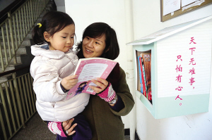 近日,家住香水湾小区7幢的一位年轻妈妈带着女儿来到一楼楼道,从“分享书屋”里借走了一本书,同时往书屋里放入了一本书。在柯桥街道大渡社区香水湾小区的不少一楼楼道内,由社区组织安装了一间间“分享书屋”。这些“分享书屋”造型小巧,可容纳10多本书,目前已经在10幢楼的楼道出入口进行了安装。