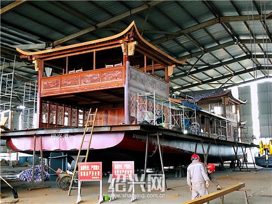 绍兴最长最高的木质游船“越州舫”即将建成 - 比西湖上最大的画舫还要大 光会议室就可容纳120余人