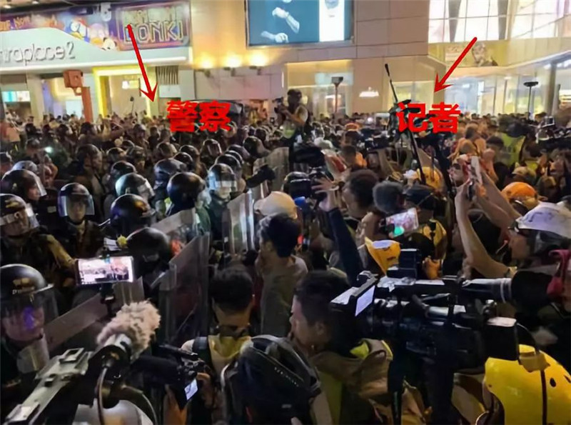相比之下,像香港记者那样将镜头“怼”到警察脸上的操作,是不存在的。