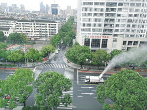 连日来,我市多地出现连续阴雨天气。昨日下午3时,天阴沉沉的,在越城区延安东路上,一辆雾炮车正在不停地喷洒水雾,过路的市民不禁产生疑问:“上午刚下过雨,这时候雾炮车出来作业,不是浪费吗?”他们对此不是很理解。