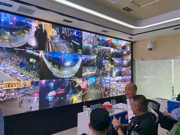 民警监控街道人流。澎湃新闻记者朱奕奕图
