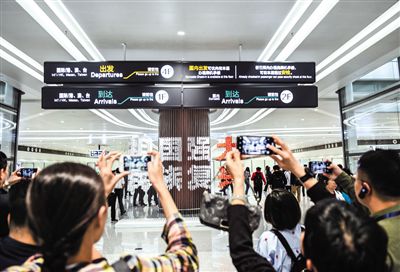 为了打卡,市民郭先生特意选择了在大兴机场降落的航班。郭先生说:“原本我计划乘坐降落在首都机场的航班,离家也近一些,而且机票价格跟大兴机场一样。但是为了来看一下大兴机场,我还是选择了后者。”