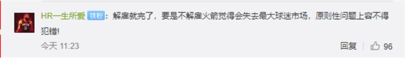 但在“虎扑篮球”“休斯顿火箭队中文网”等微博账号下,大量火箭球迷表示,“原则问题不容犯错”,并要求火箭队解雇莫雷↓