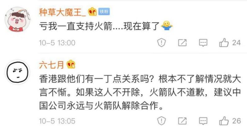但截至发稿,火箭队官方微博尚未对此发表任何评论↓