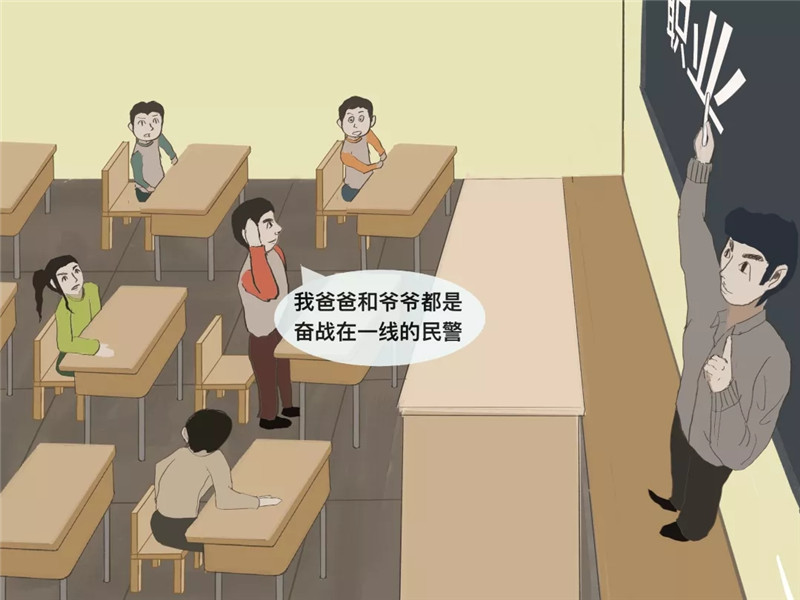 小学语文课上,老师教到职业这个词,我忍不住和同桌说我爸爸和爷爷都是警察,他羡慕的眼神让我坚定了未来也要做个警察。