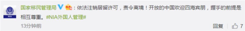 在奥地利人克拉尔斯被限期离境之时,国家移民管理局官方微博,奉上温和又明确的“送别”。