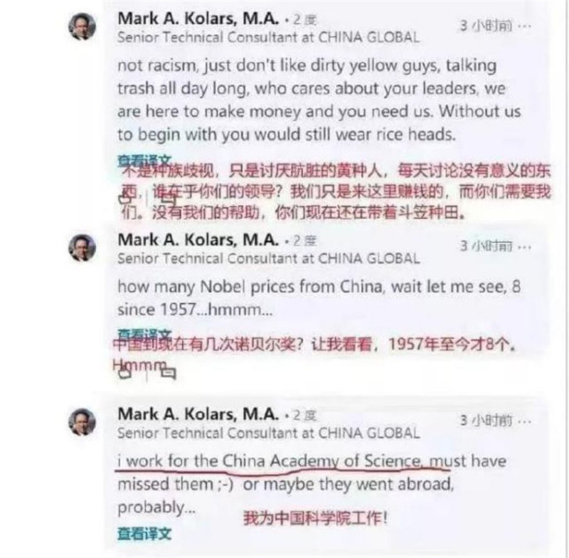 他曾是中科院自动化研究所的外籍雇员。但是,已在中国工作多年的他,却在其社交媒体上发布种族主义言论,包括“我讨厌肮脏的黄种人”“欧洲的血统中国永远赶不上”。