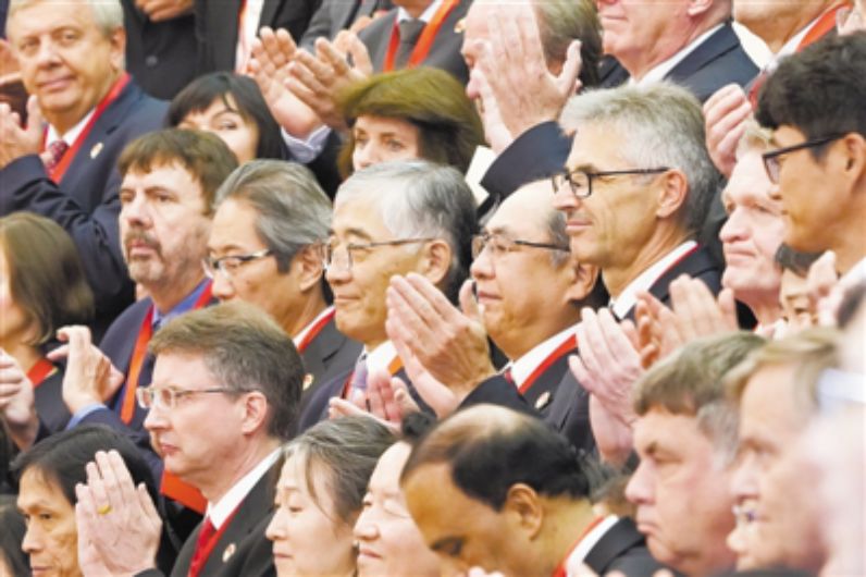 (图:2019年度中国政府友谊奖颁奖仪式上,外国专家欢聚一堂。)