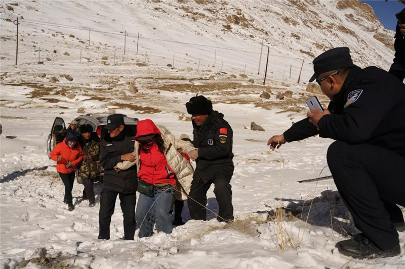 接到求助后,新疆边检总站喀什边境管理支队红其拉甫边境派出所当即派出4名民警和6名护边员携带救援设备及相关物资前往救援,将袁女士一行成功解救,并转移至安全地带。