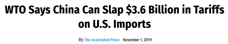 而英国广播公司(BBC)在11月2日的报道中认为,虽然这一裁决涉及的36亿美元,与中美经贸摩擦所涉及的数千亿美元相比显得数额很小,但WTO这一裁决颇有象征意义。BBC还表示,这一裁决虽然针对的是7年前中国向WTO提出的一起申诉案,但由于裁决宣布之际,正值中美经贸磋商尚无定论之时,因此外界特别关注这一裁决对双方贸易谈判可能造成的影响。