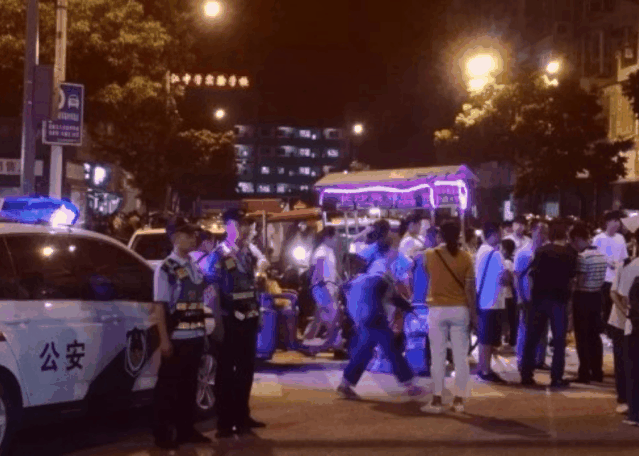 ▼学生下晚自习,民警按时到岗守护