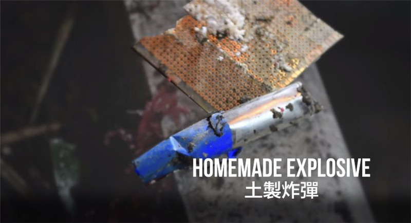 汽油弹、通渠水水枪(腐蚀性武器)、简易炸弹、弓箭、改装弹弓、自制烟雾弹、自制火焰发射器、砖头棍棒……化学燃爆、腐蚀性武器和纯物理攻击,不一而足。