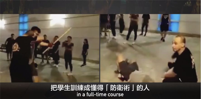 为了在与警察“作战”中占优,这位“外教”还特别开设了“战术电筒防卫”与“夺棍技巧”等课程。