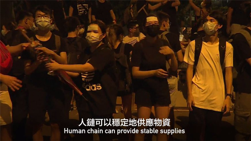 物资怎么供应?稳定的人形供应链,可以为前线对抗警察的暴徒提供源源不断的头盔、雨伞、口罩以及护目镜等物资。