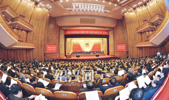 昨日上午,市政协八届三次会议在绍兴大剧院隆重开幕。 首席记者 袁云 记者 何雯 摄