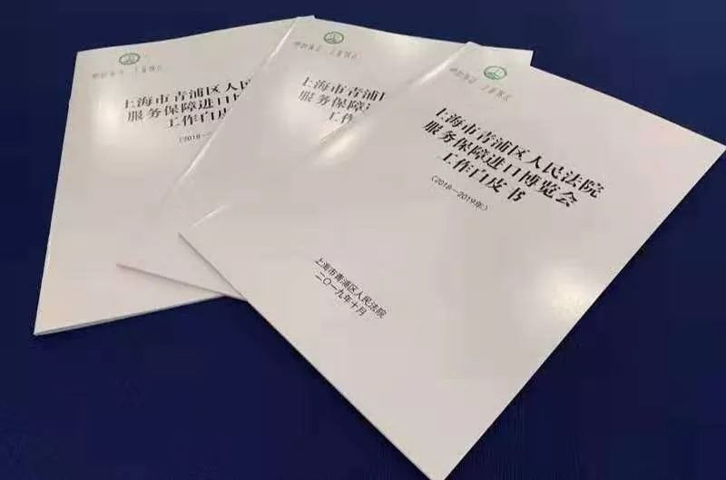 首先映入记者眼帘的是一本内容详尽的《上海市青浦区人民法院服务保障进口博览会工作白皮书》,里面收录了不少典型案例。
