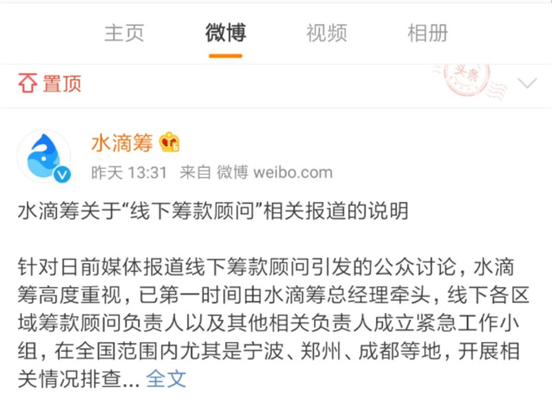 水滴筹关于“线下筹款顾问”相关报道的说明