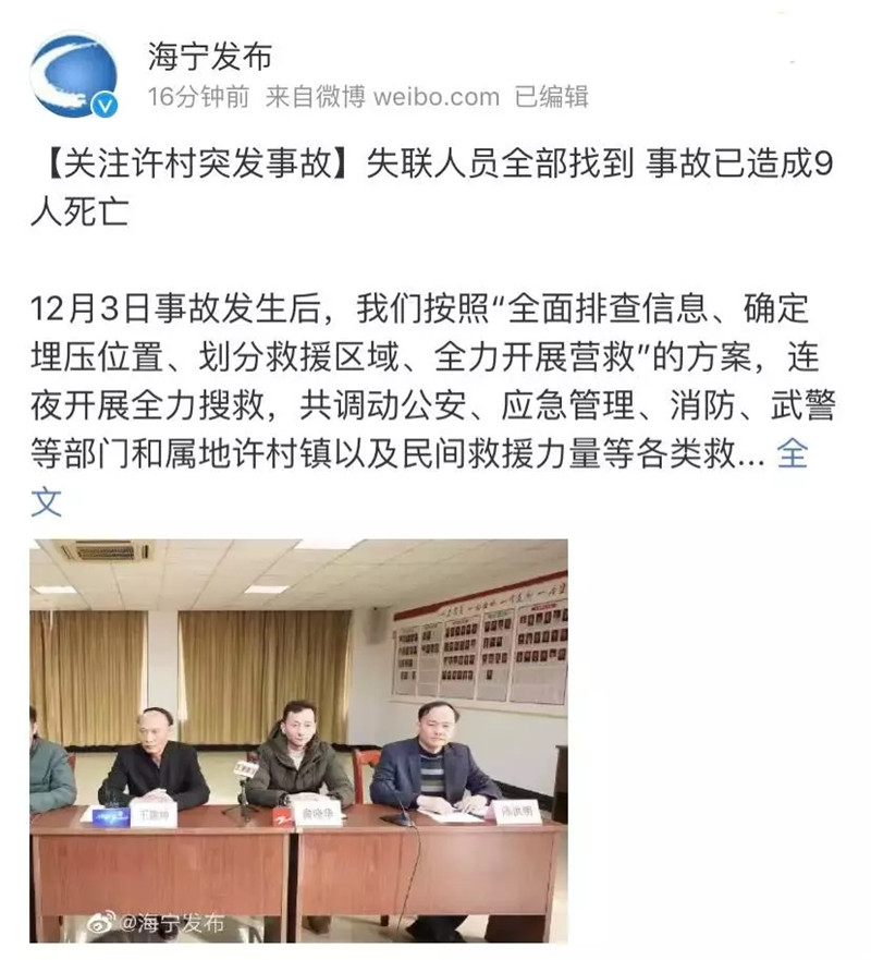 至12月4日凌晨3时许,经认真排摸并确认已知失联人员全部找到,现场还在清理中。