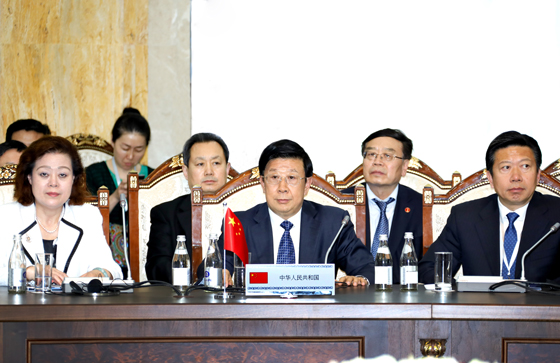 中国驻吉尔吉斯斯坦大使杜德文、国务院副秘书长孟扬、外交部涉外安全事务专员程国平、国家安全部副部长董经纬、公安部部长助理聂福如参加会议。(图:满博)