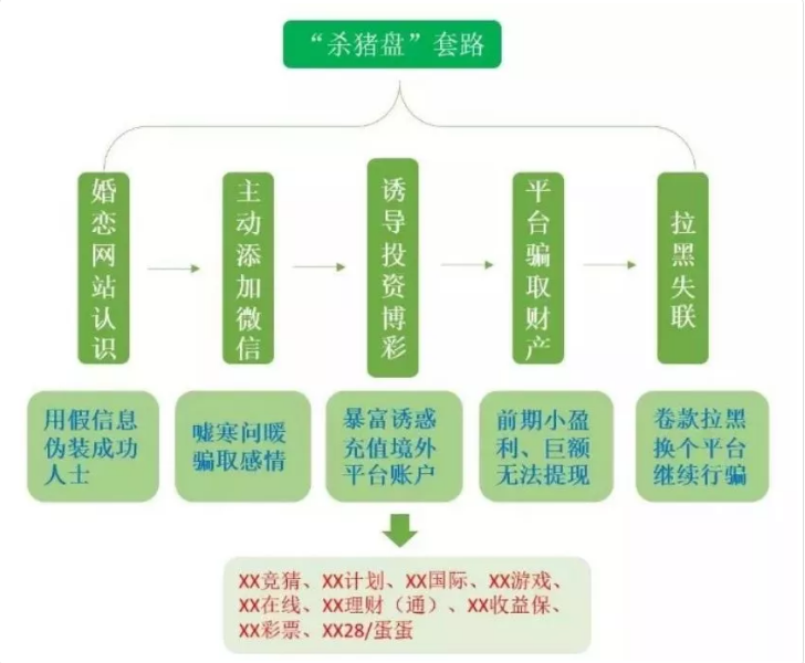 ● 骗子们一般藏身于东南亚,在国内婚恋网站以谈恋爱为名接近大龄男女,将其当作待宰割的“猪”;