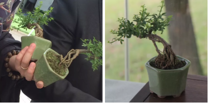 据“老顽童”介绍,五一期间其选择了六件作品,参加了由绍兴市风景园林学会组织的全市性盆景展。撤展后,他把6件作品带到了金德隆围炉盆景展销会进行展示,没想到竟然有盆友直接跟到金德隆,坚持要把他其中4件作品带走。后来得知,这位盆友竟是金德隆园区2幢众程公司的企业主姒总。