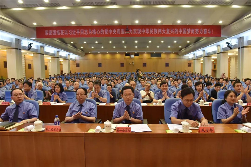 6月6日下午,最高人民检察院召开机关全体党员干部会议,对开展“不忘初心、牢记使命”主题教育进行动员部署。最高检党组书记、检察长张军强调,要认真学习贯彻习近平总书记重要讲话精神,按照党中央部署,以高度政治责任感、良好精神状态和扎实工作作风把主题教育组织好、落实好、见实效。中央第十一指导组组长冷溶出席会议并讲话。最高检党组副书记、副检察长邱学强主持会议。