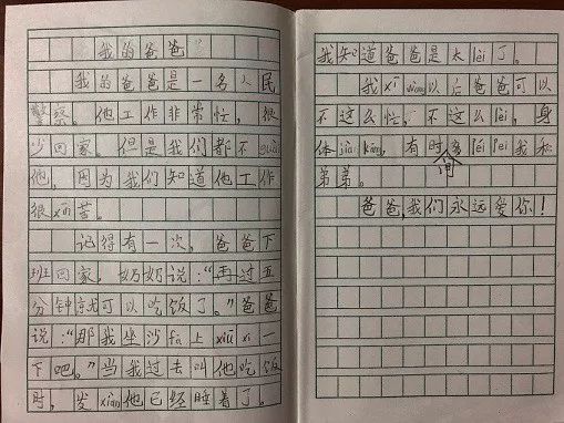 ▲来自大溪派出所民警陈金辉女儿的作文