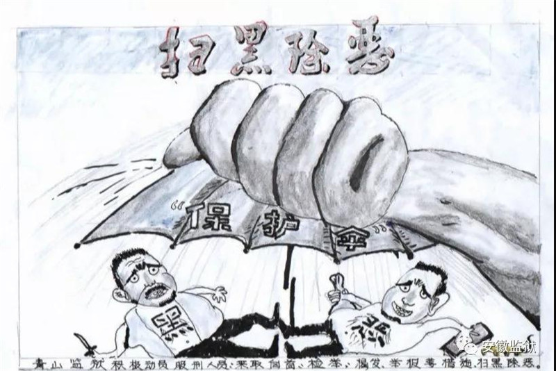 为进一步丰富扫黑除恶专项斗争的教育宣传形式,扩大扫黑除恶专项斗争的宣传范围,近日,青山监狱在服刑人员中举办了“扫黑除恶”主题漫画大赛。