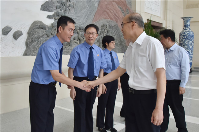 7月17日下午,最高人民检察院党组书记、检察长张军会见最高检第九批援藏和第四批援青干部。