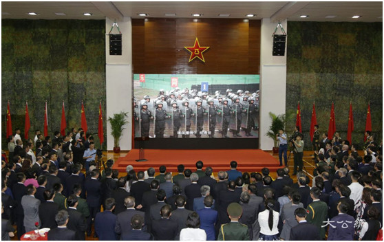 驻港部队播放《不忘初心 守护香港》主题片(图片来源:香港“大公文汇全媒体”)