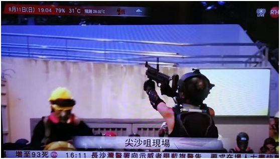 同日晚间,非法示威者在尖沙咀警署外集结数小时,有网友爆料称有人使用改装后的仿真枪械向警署内发射催泪弹。在反对派的社交媒体群组中,有人称上述枪械是改造后具有更大威力的武器。