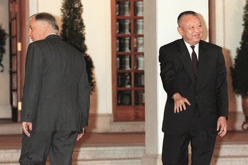 1997年6月30日,末代港督彭定康与候任行政长官董建华(右)在港督府会晤