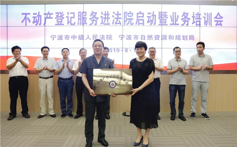 8月19日下午,宁波中院与宁波市自然资源和规划局携手,在宁波中院执行指挥中心举行不动产登记服务进法院签约暨授牌仪式,标志着全省首份市级层面的“不动产登记进法院”协议落地宁波。浙江高院、宁波市委主题教育巡回指导组、宁波市自然资源和规划局、宁波中院等单位有关领导出席签约仪式。