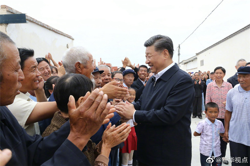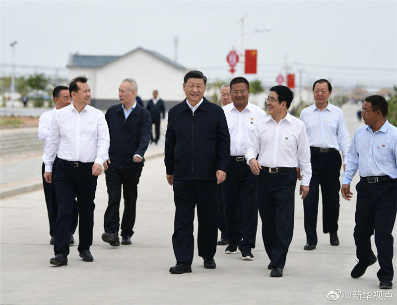 富民新村地处甘肃省古浪县黄花滩生态移民区,习近平总书记21日上午来到这里,看望从山区生态移民易地扶贫搬迁的乡亲们。他走进村民李应川家,小院洁净、住房敞亮、厨卫设施齐全。在客厅坐下来,李老汉拿出一张搬迁前的老照片给总书记看,曾经居住的土坯房同窗明几净的新居有天壤之别。习近平对这里群众生产生活条件发生的巨大变化感到十分欣慰,李老汉连连感叹现在日子太幸福了。习近平强调,你们高兴我们也高兴,共产党就是为人民服务的,就是为老百姓办事的,让老百姓生活更幸福就是共产党的事业。(文字记者:张晓松、朱基钗 摄影记者:鞠鹏、谢环驰)