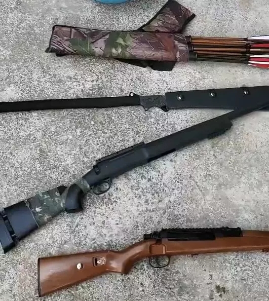 一个两层楼的木质建筑,这就是石蛙养殖基地的全部。民警破门而入时,发现地上放着两把假枪和数把长刀,高某的身份证和手机遗留在木屋二楼,吃饭的碗筷还杂乱地堆在桌上。民警判断高某刚离开不久,就兵分两路,分别往山上山下继续搜寻,却始终不见他的踪迹。
