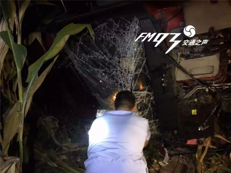 原来,8月21日晚23点左右,胡晓霞的丈夫、磐安县公安局盘山派出所民警傅海军和辅警做基础工作回所途中,接到指挥中心电话,前方茶谭村公路边有一辆大货车侧翻在玉米地里,驾驶员被困,距离现场最近的傅海军和同事立即赶往现场。