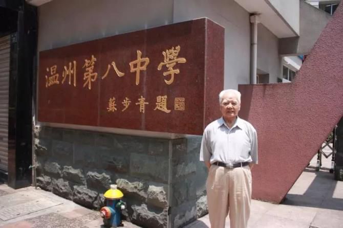2016年6月,高铭暄先生在温州中学高中部旧址前留影