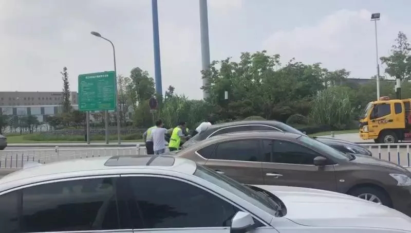 正当钟健准备去查看停在收费站广场出口附近的事故车时,他突然留意到,在事故车旁停着的一辆白色轿车内,一名男性驾驶员瘫坐在驾驶座位上,头不停地在摇晃。