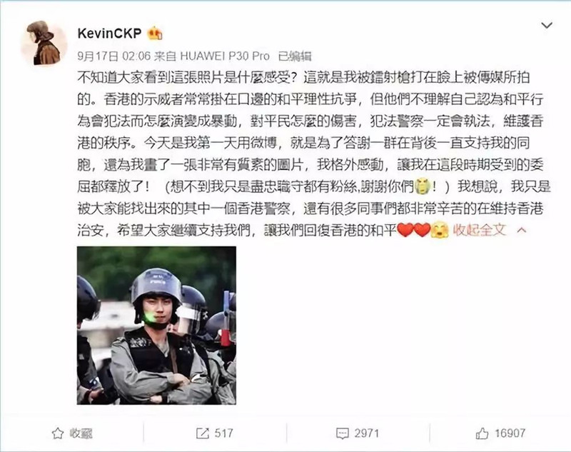 在香港持续多月的社会运动中,3万多名香港警察成为“止暴治乱”,守护香港法治的中坚力量。然而,在脸书、推特等社交媒体上,充斥着大量抹黑、攻击香港警察的言论,“撑警”的声音受到压制。近来,越来越多的香港警察开始在微博平台开设账号,内地网友们的支持和鼓励让他们备受鼓舞。“感受到自内地同胞的热情,听到他们支持的声音,以往孤独的香港警察顿时觉得十分温暖”,一位开通微博账号、已有2万多粉丝的香港警察对环球时报-环球网记者如此说道。