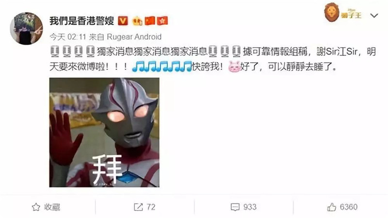 与刘Sir一样,多位开通微博的香港警察告诉环球时报-环球网记者,他们都是由于执勤期间的照片、视频被传到网络上,受到内地网友的关注后,才决定开通微博。微博名为“KevinCKP”的香港警察卓帮办在开通微博的首日就发文称,“今天是我第一天用微博,就是为了答谢一群在背后一直支持我的同胞,还为我画了一张非常有素质的图片,我格外感动,让我在这段时期受到的委屈都释放了”。↓