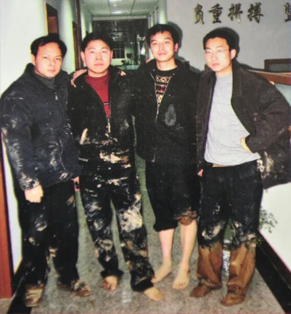 4个人从泥塘里出来后拍的照片(右一为汤国华)