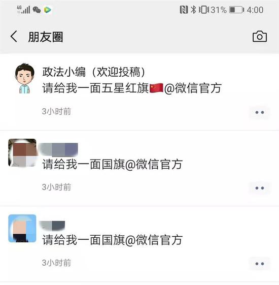 对,十万加靠的是努力,不是@微信官方!不过话说回来,在哪里可以领到五星红旗呢?我也想成为朋友圈里最靓的仔。