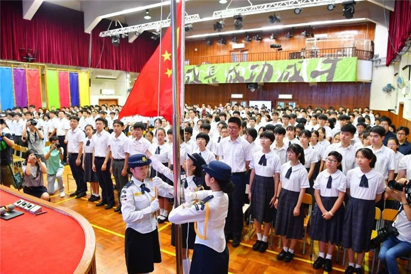 2日,香港逾千所大中小学校迎来开学日,其中不少学校举办开学礼,举行庄严隆重的升旗仪式等活动,共同迎接新学年的到来。在香港教育工作者联合会黄楚标中学,400多名在校师生参加了2019-2020年度开学典礼,升国旗,奏国歌。