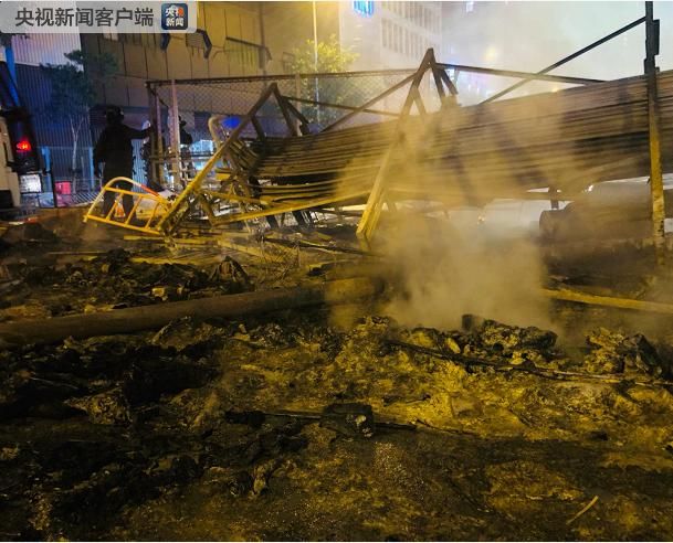 警察总部的火势已被扑灭激进示威者在港铁旺角站大肆破坏,